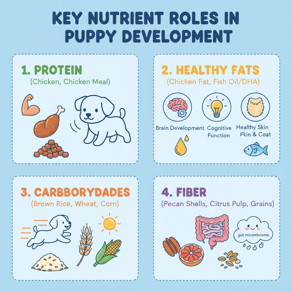 - Chicken: The primary protein source. It’s lean and highly digestible for young systems.