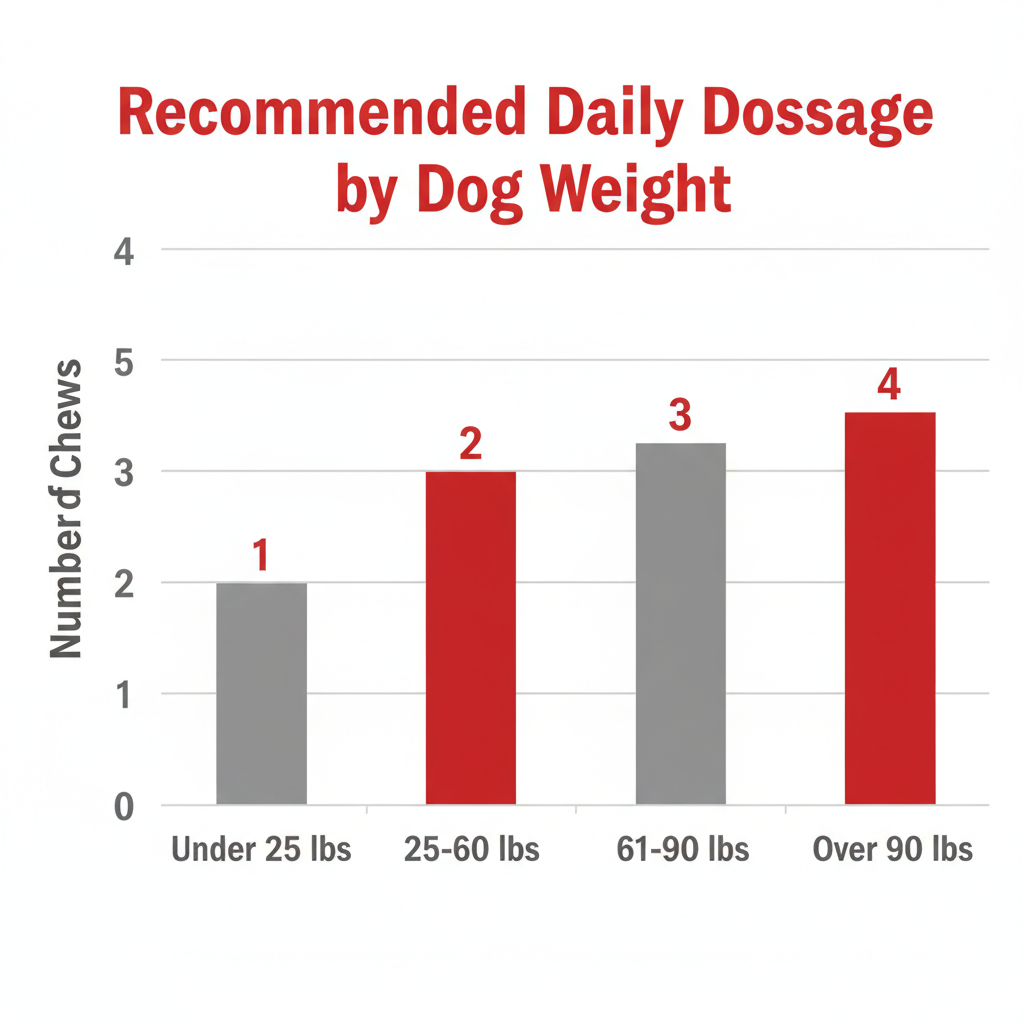It doesn't get much easier than "set and forget." You simply follow the dosage chart on the back. For giant breeds (90lbs+), you’ll be giving about 4 chews a day. We recommend splitting this between morning and evening meals to maximize absorption.