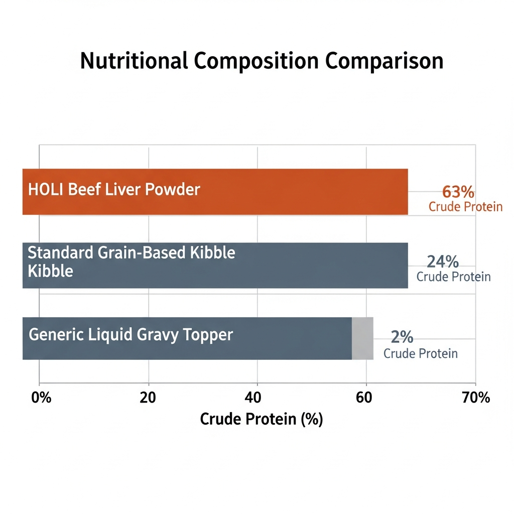 The beauty of the HOLI formula lies in its simplicity. Many toppers hide behind "meat by-products" or "natural flavors," but this product keeps things transparent. Because it’s freeze-dried in small batches in the USA, the cellular structure of the organ meat remains intact, which locks in the aroma and vitamins that cooking usually kills off.