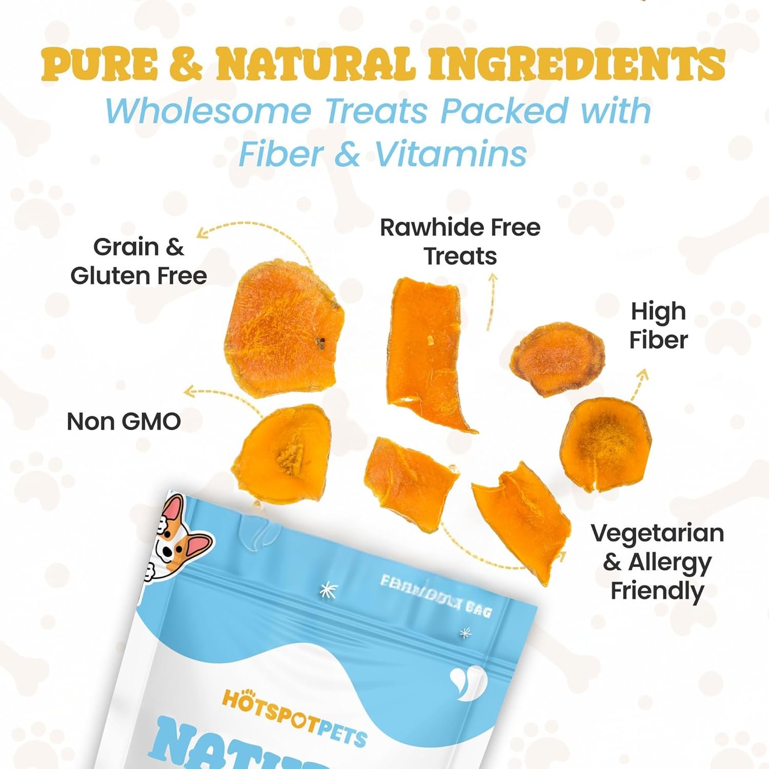 When we look at the back of the bag, there isn’t much to decode—and that’s exactly why we like it. Hotspot Pets uses a slow dehydration process to pull the moisture out of raw pumpkin while locking in the fiber and vitamins. Unlike traditional rawhide that can sit in a dog's gut like a brick, these slices break down easily.