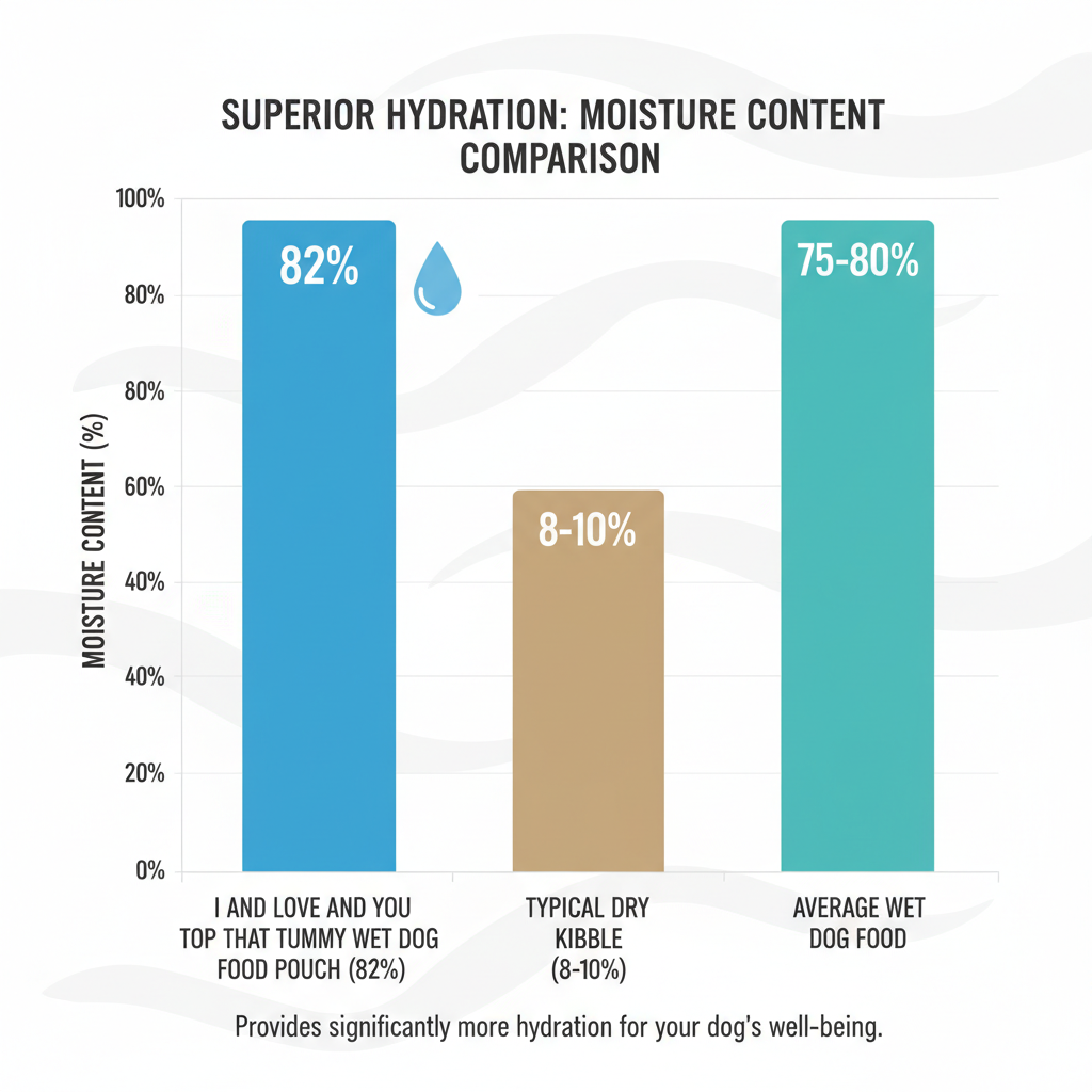 When we break down the numbers, the protein-to-fat ratio is ideal for a topper. Since it’s 82% moisture, it’s a fantastic way to sneak extra water into a dog that doesn't drink enough from their bowl. This "wet" element mimics the fresh diet dogs would eat in the wild, making it much more biologically appropriate than dry nuggets alone. We found that the lack of fillers like rice or white potatoes helps keep the low glycemic index, preventing the "sugar crash" that some lower-quality toppers cause.