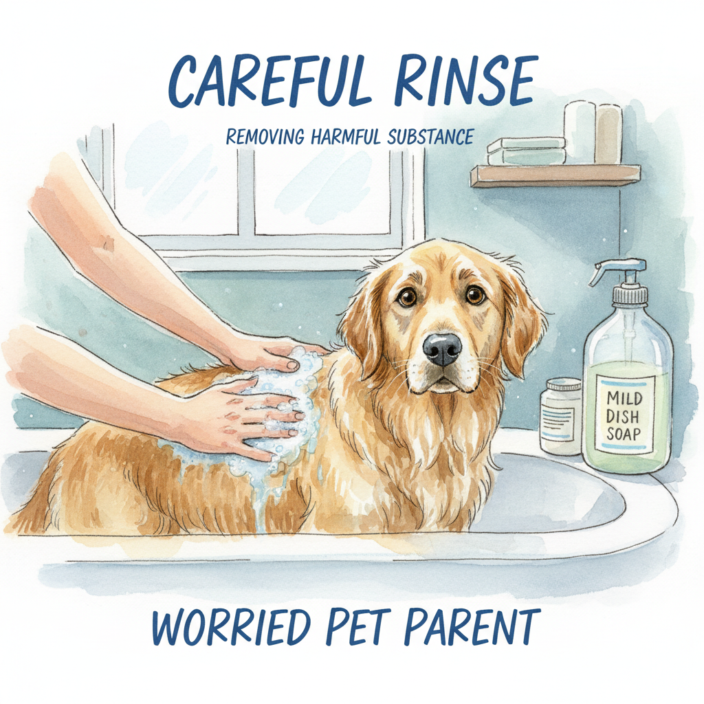 - Wash your dog's fur again with dish soap and water if the exposure was on their skin.