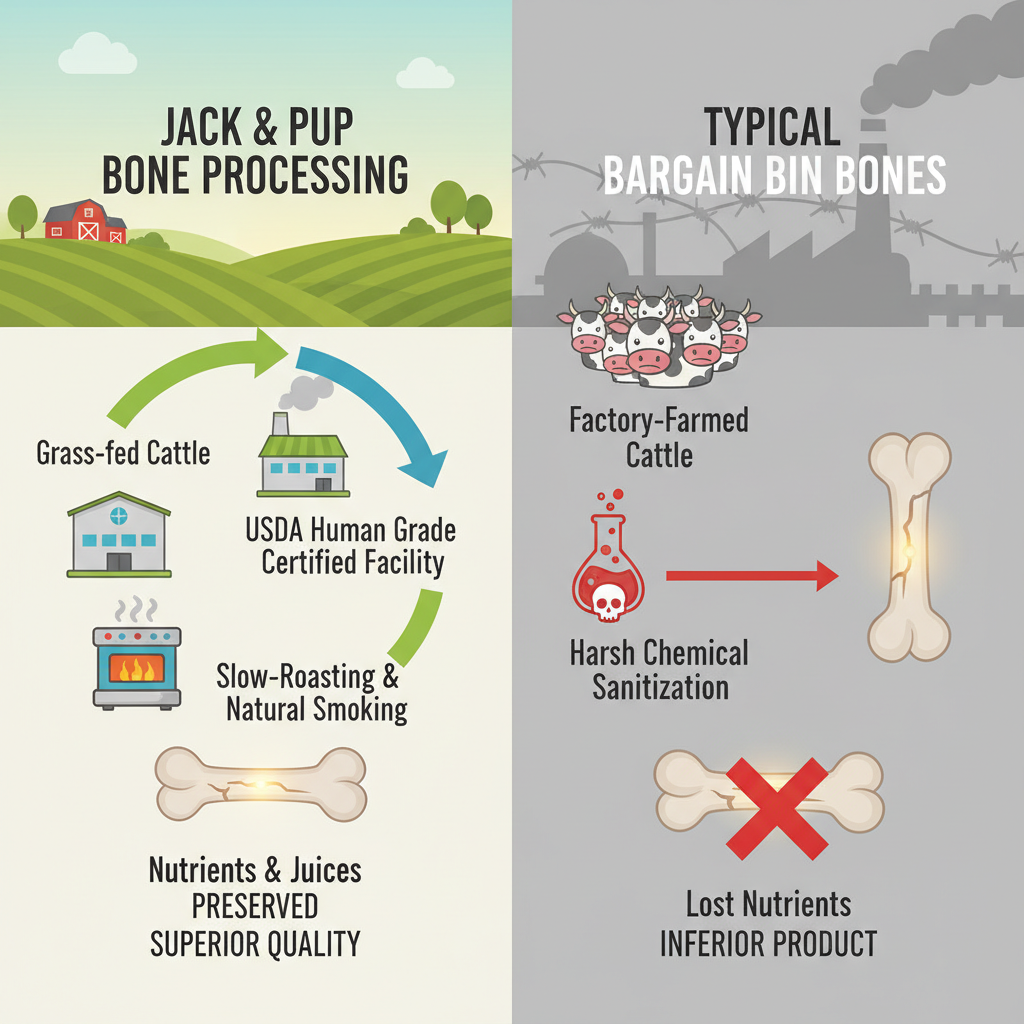 Our team at Petscarelab appreciates the transparency here: the bones are processed in a USDA Human Grade Certified facility. Instead of using harsh chemicals to "sanitize" the bone, Jack & Pup uses a slow-roasting and natural smoking process. This low-temperature method preserves the integrity of the bone while locking in the natural juices and nutrients your pup craves.