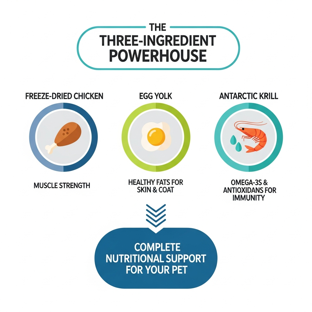 We’ve all been there: you buy expensive food, and your cat just stares at you like you’ve offered them a bowl of rocks. Because this topper uses freeze-dried chicken and egg yolk, the aroma is intense and highly enticing to pets. It’s an easy fix—just a light dusting over their regular food usually does the trick to get them eating again. For dogs who don't drink enough water, mixing this with a little warm water creates a "savory broth" they’ll lap up in seconds.