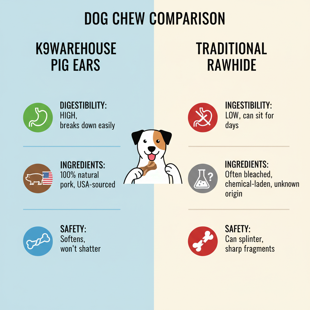 When our team at Petscarelab looks at a treat, we want to see a label that doesn't require a chemistry degree to read. These pig ears for dogs are as simple as it gets: 100% real pork. K9warehouse sources these ears and packs them right here in the USA, which gives us a much higher level of confidence in the supply chain. Unlike "mystery meat" treats, these are single-source, meaning you know exactly what’s going into your dog's mouth. The processing avoids high-heat stripping, opting instead for a method that keeps the pork flavorful without needing artificial boosters.