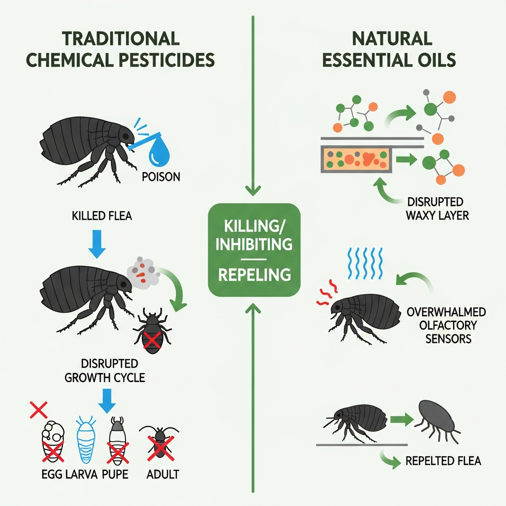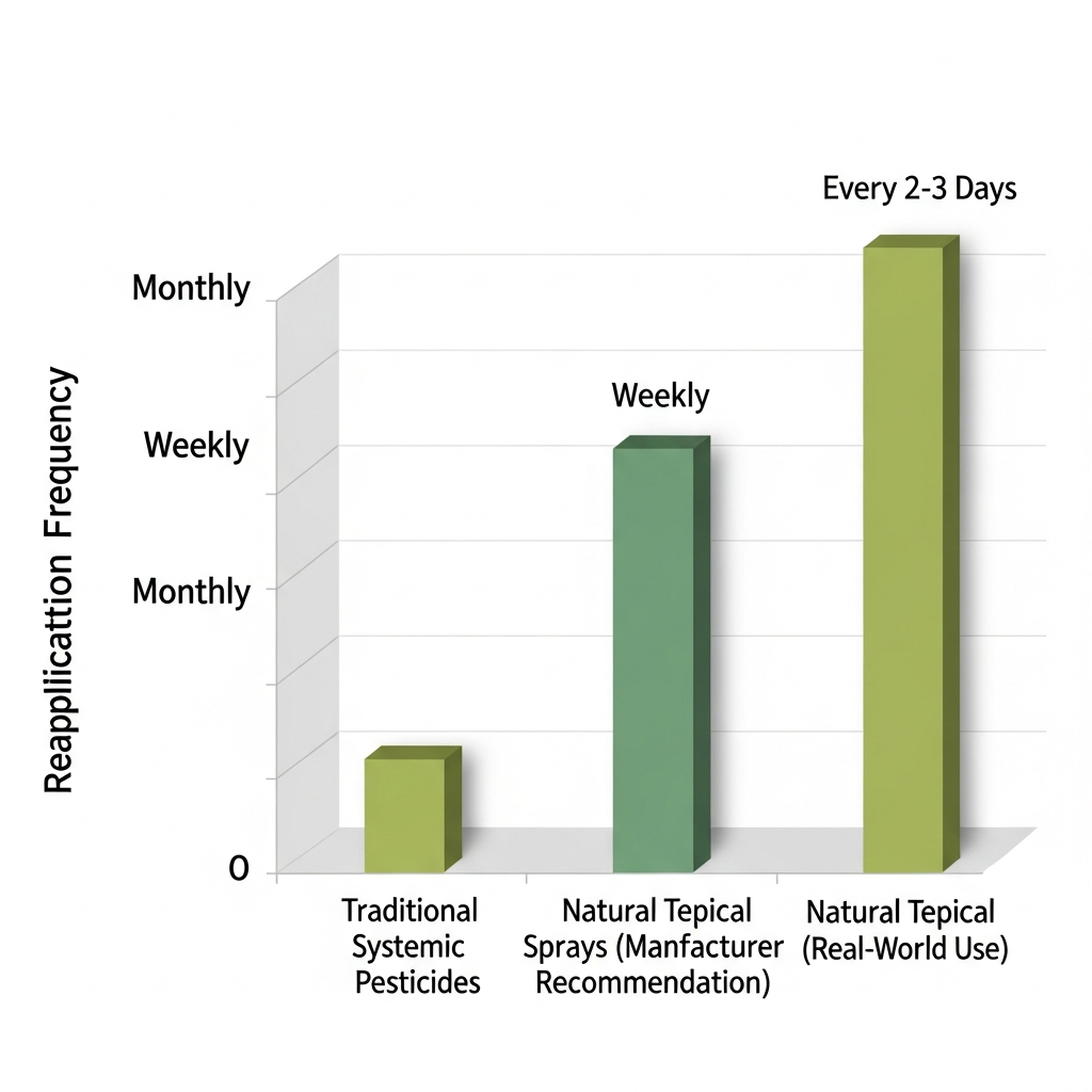 Instead of systemic pesticides, this spray uses 100% food-grade, plant-based active ingredients. It packs a potent blend of essential oils: Eugenol, Geraniol, Thyme Oil, and Lemongrass Oil. Rather than poisoning the pests, these volatile oils naturally strip away a flea's waxy exoskeleton and overwhelm their olfactory sensors, actively repelling fleas, ticks, and mosquitoes before they bite. Because the formula skips the synthetic chemical binders, its efficacy window is naturally much shorter. The bottle recommends a weekly application, but real-world feedback shows you will likely need to reapply it every two to three days to keep your dog fully protected from heavy outdoor exposure.