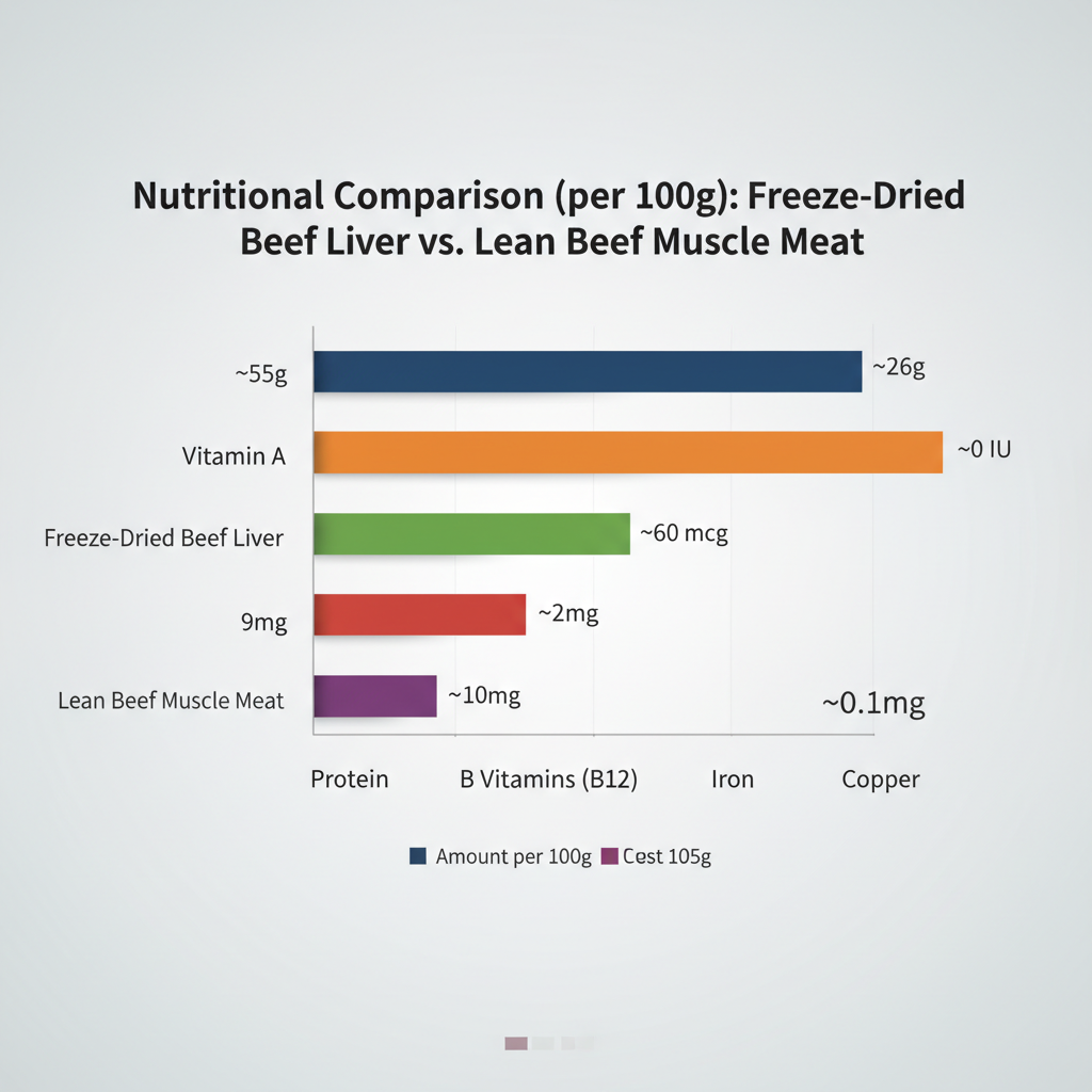 100% Beef Liver: This is nature's multivitamin. Liver is significantly more nutrient-dense than muscle meat. It’s packed with Vitamin A for eye health and B vitamins for sustained energy. It also provides a healthy dose of Iron and Copper, which keep your dog's blood healthy and their coat looking like they just stepped out of a grooming salon.