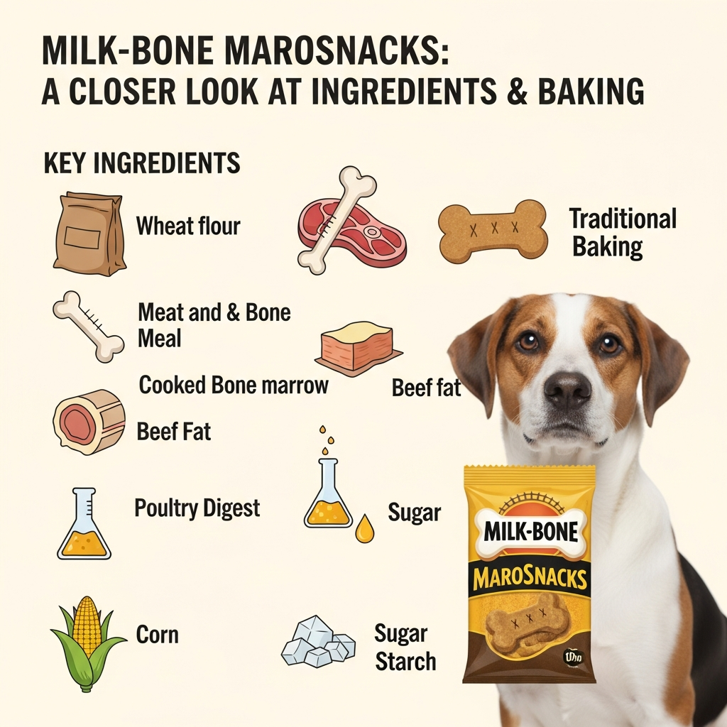 When we look at the back of the Milk-Bone MaroSnacks Small Dog Treats canister, the first thing our team at Petscarelab noticed is the "meaty" promise. While the packaging highlights real bone marrow, the ingredient list shows a blend of wheat flour, meat and bone meal, and cooked bone marrow. It isn't a single-source protein treat; instead, it’s a baked biscuit that uses beef fat and poultry digest to ramp up the flavor profile.