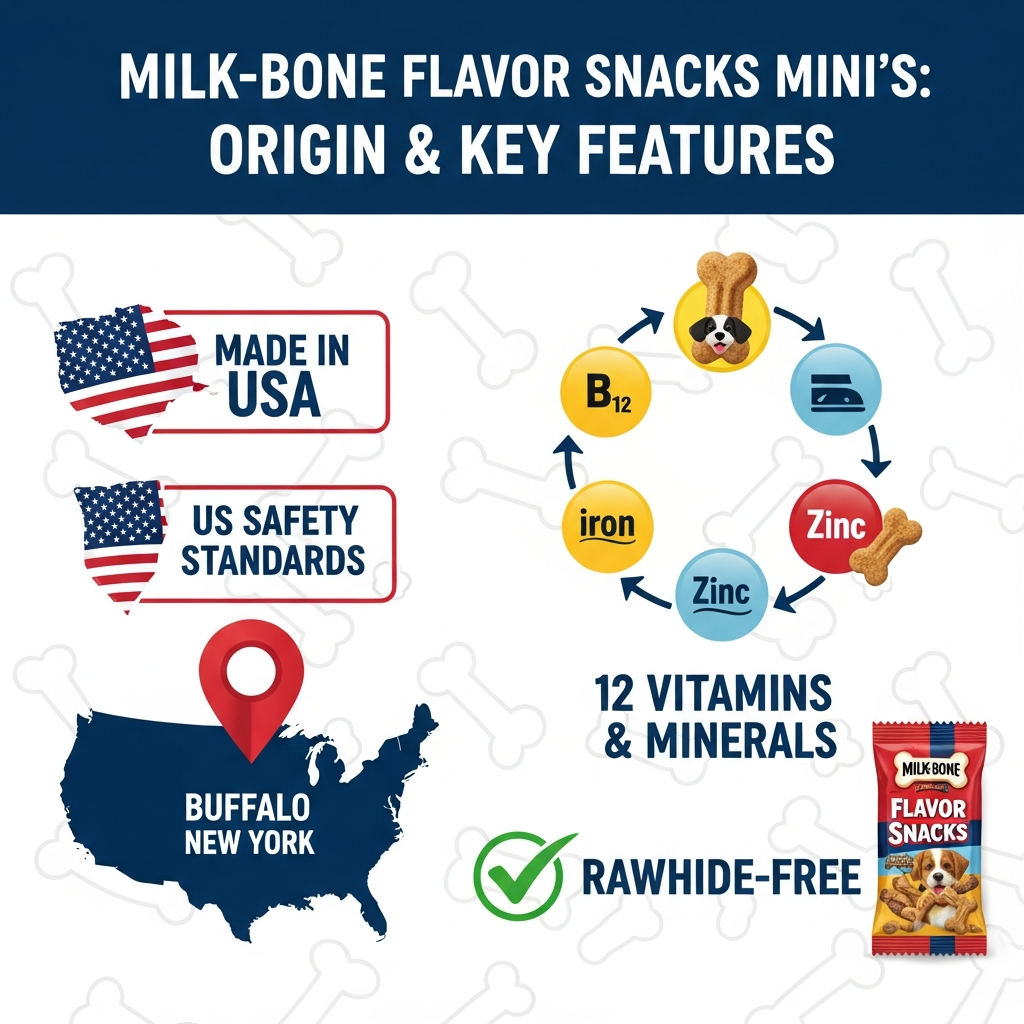 A major win for transparency is the processing location. These treats are baked in Buffalo, New York. This domestic production ensures they meet US safety standards. The recipe also includes a fortified blend of 12 vitamins and minerals, including Vitamin B12, iron, and zinc, which isn't always common in budget-friendly biscuit snacks.