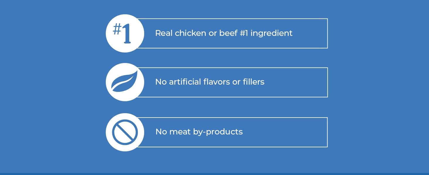 PetsCareLab's conclusion: These tender, homestyle snacks feature real chicken as the primary ingredient and a soft texture that makes them a perfect five-star reward for adult dogs of all sizes, particularly seniors with dental sensitivities or pups that prefer a chewy treat over a hard crunch.