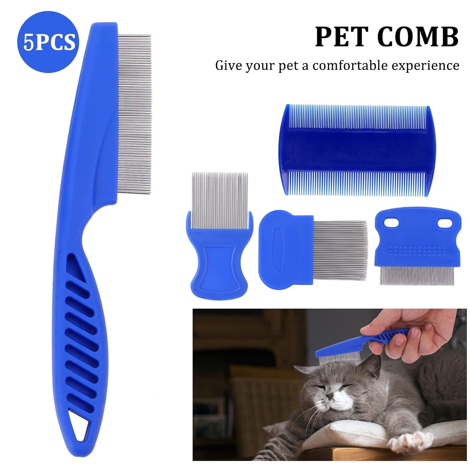✔️ Includes four versatile combs in various sizes and styles, suitable for dogs, cats, rabbits, and other household pets.