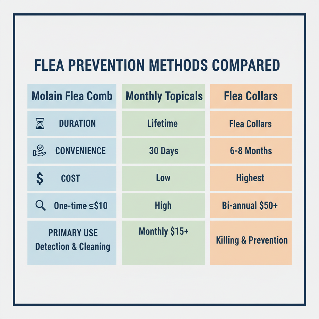 While the Molain Flea Comb Set is your best tool for detection and physical removal, it’s usually part of a broader "integrated pest management" plan. Here is how physical grooming compares to the heavy hitters in flea prevention: