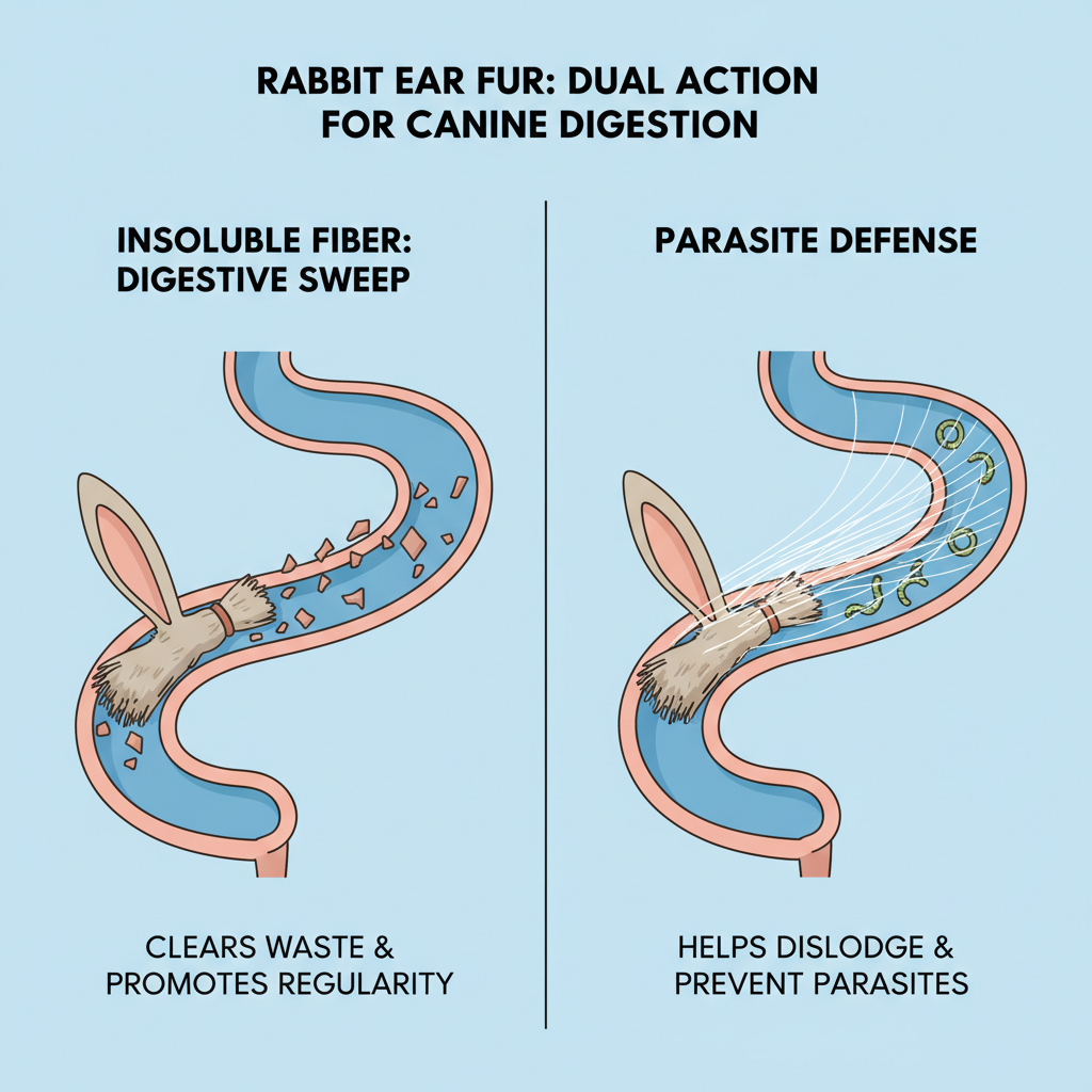 Don't let the "furry" look scare you off—it’s actually a nutritional powerhouse. Munchbird Dehydrated Rabbit Ears are packed with insoluble fiber. While most dog foods focus on soluble fiber, insoluble fiber from the fur helps firm up stools and keeps things moving regularly through the colon.