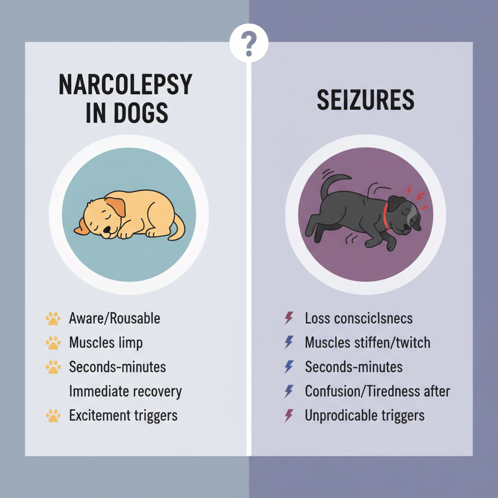 It's easy for pet parents to mix up narcolepsy with seizures, especially since both can involve sudden collapses. But these are two very different conditions. Here's how to tell them apart: