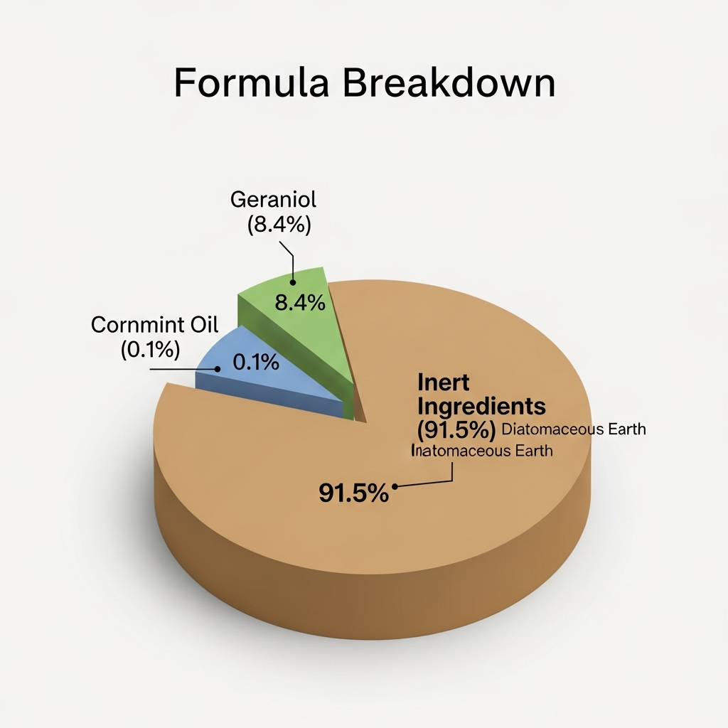 Let's look at the science behind why this specific blend works so well. Instead of relying on harsh synthetic neurotoxins to kill adult fleas, this formula uses a potent, plant-based approach. I noticed the primary active ingredients are steam-distilled essential oils: Geraniol (8.4%) and Cornmint Oil (0.1%). These natural extracts penetrate the exoskeletons of pests and kill fleas, ticks, and even ants on contact.