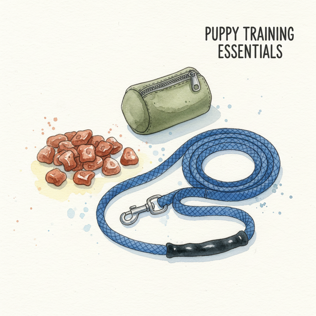 Don’t forget to have essential training tools on hand, like a convenient treat pouch and a durable six-foot leash.