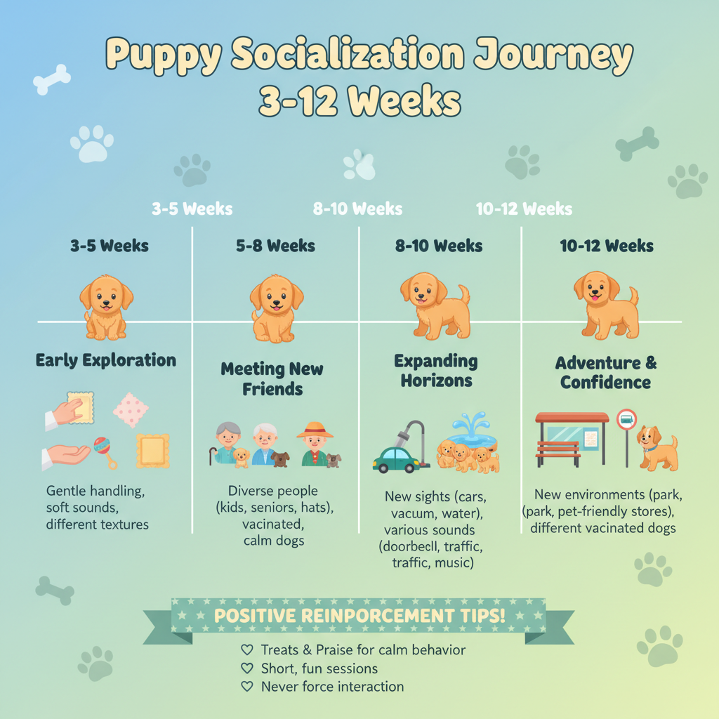 - Early socialization plays a critical role in shaping your pup’s confident and balanced growth.