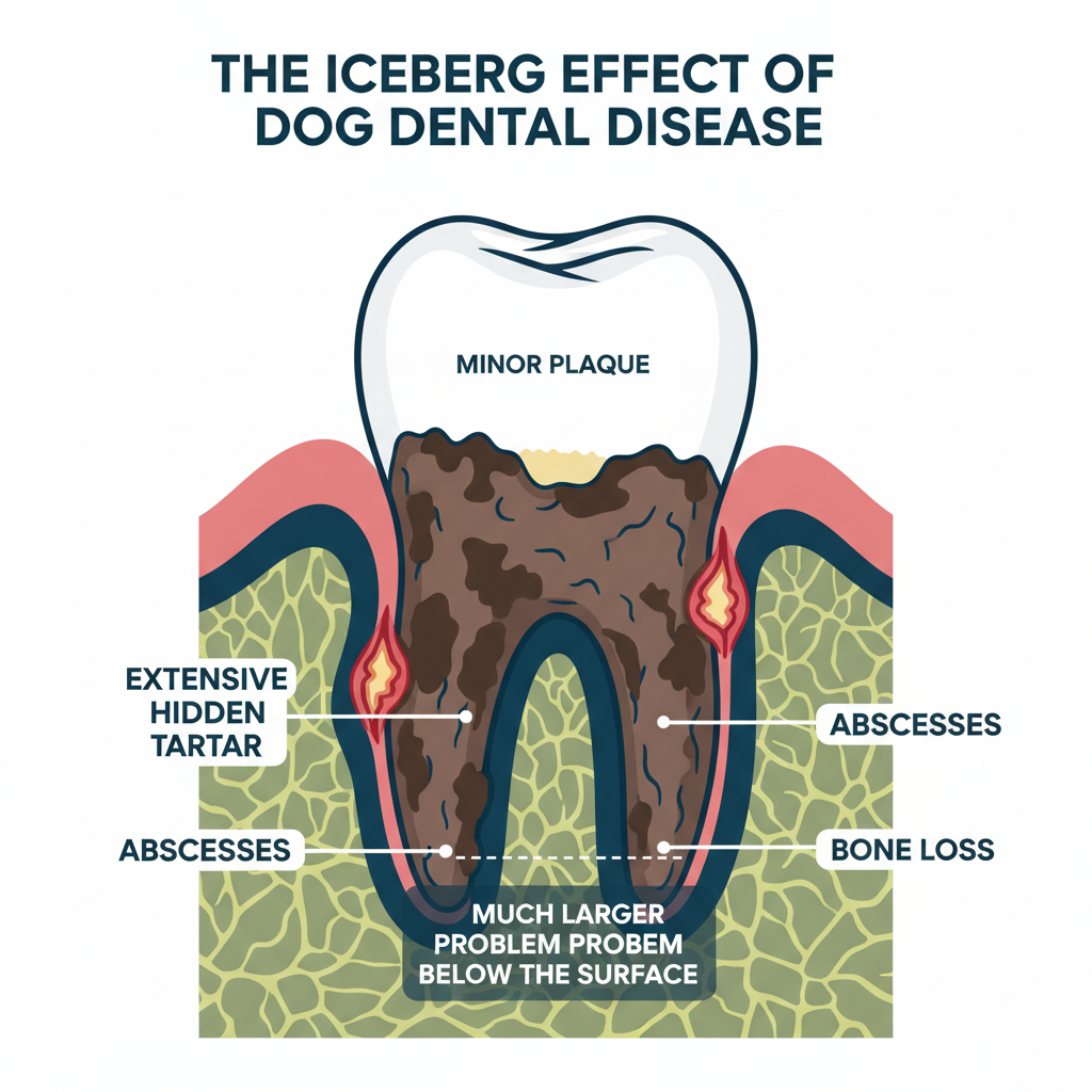 - Hiding Serious Problems: When you only clean what's visible, you can get a false sense of security about your dog's dental health. While the visible plaque is gone, serious and painful issues like tooth resorption (when the tooth essentially eats itself), abscesses, severe gum disease, or even broken teeth could be quietly worsening below the surface. These problems cause a lot of pain and can lead to more serious health issues if they go unnoticed.