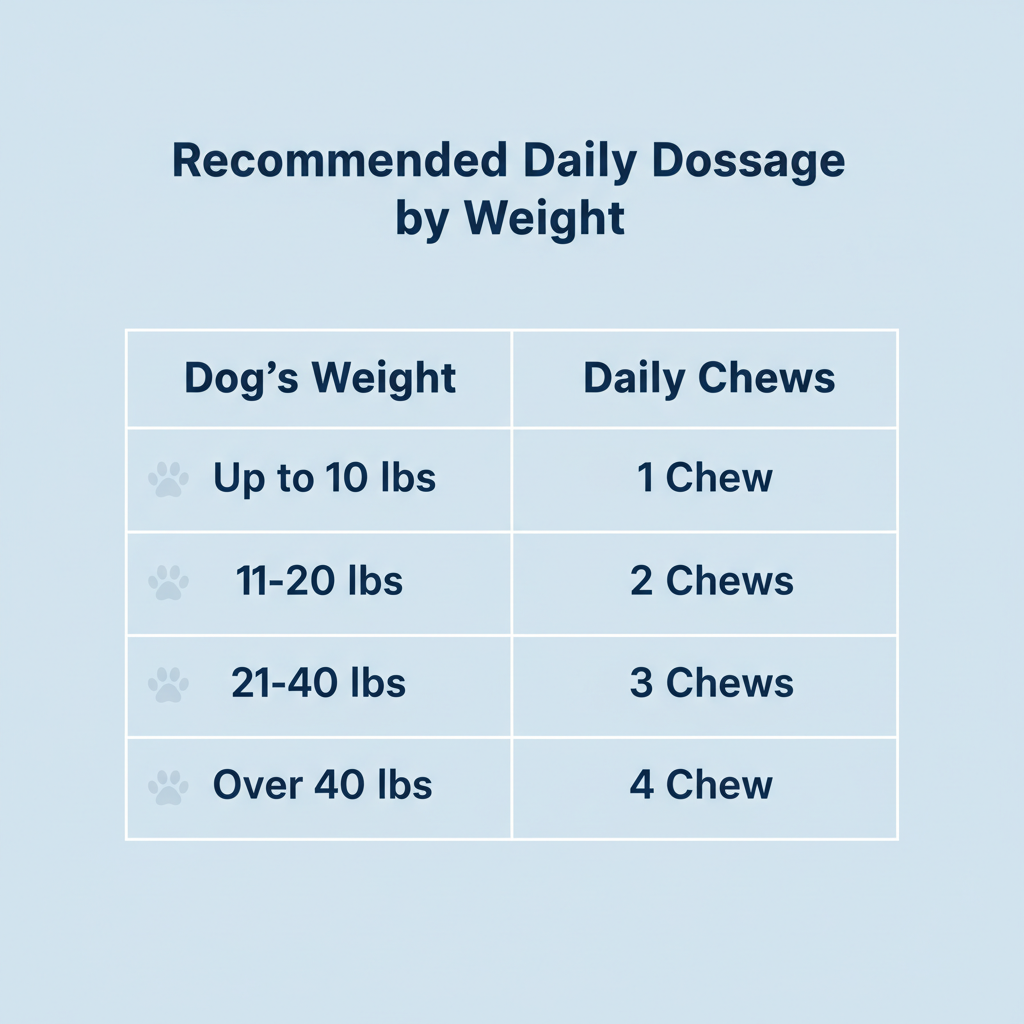 On a scale of 1–10, the ease of application is a solid 10. There’s no measuring out liquids or hiding pills in peanut butter. You just check the weight chart (1 chew per 10 lbs is the baseline) and hand it over.