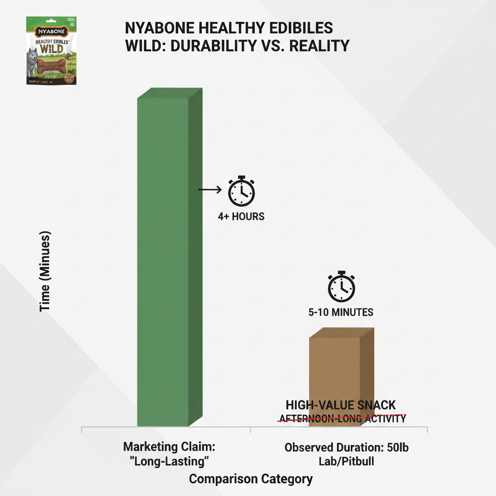 Nylabone markets these as "long-lasting," but we need to be realistic. For a 50-pound Lab or a determined Pitbull, this treat is likely a 5-to-10-minute engagement rather than an afternoon-long activity. It’s more of a "high-value snack" than a durable chew toy. On the functional side, the mechanical action of chewing does help scrape away some surface plaque, making it a decent tool for supplementary dental hygiene. If you’re looking to occupy a dog for an hour during a thunderstorm, this might not be your best bet, but as a rewarding "stay busy" treat, it works well.