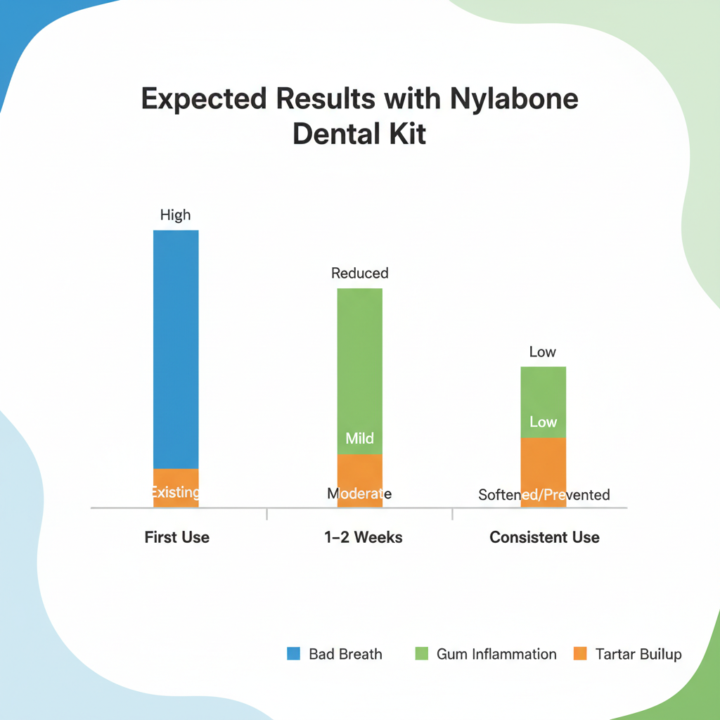 When used 3–4 times a week, you’ll notice the gum line looks less inflamed. For pups already showing slight yellowing, the tartar buildup begins to soften, making it easier to maintain preventative care.