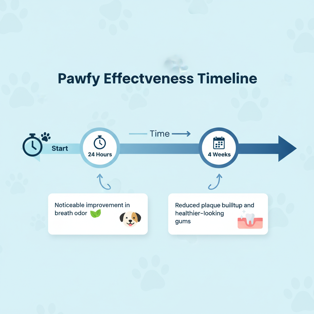 This is where Pawfy shines. Our research and user feedback show that "stinky breath" often improves within just 24 hours. If you’re tired of being exhaled on during couch time, you’ll notice the freshening difference almost immediately.