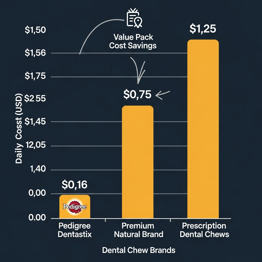 At roughly $0.16 per treat in this 102-count value pack, these are arguably the most affordable high-quality dental chews on the market.