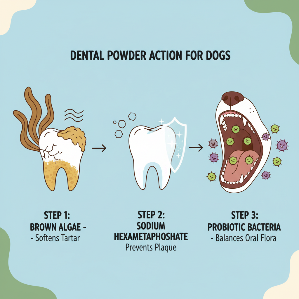 The powder is very fine, almost like a light flour. Unlike some dental products that smell like medicinal mint (which dogs usually hate), this smells like savory chicken liver. It blends into kibble or wet food almost instantly.