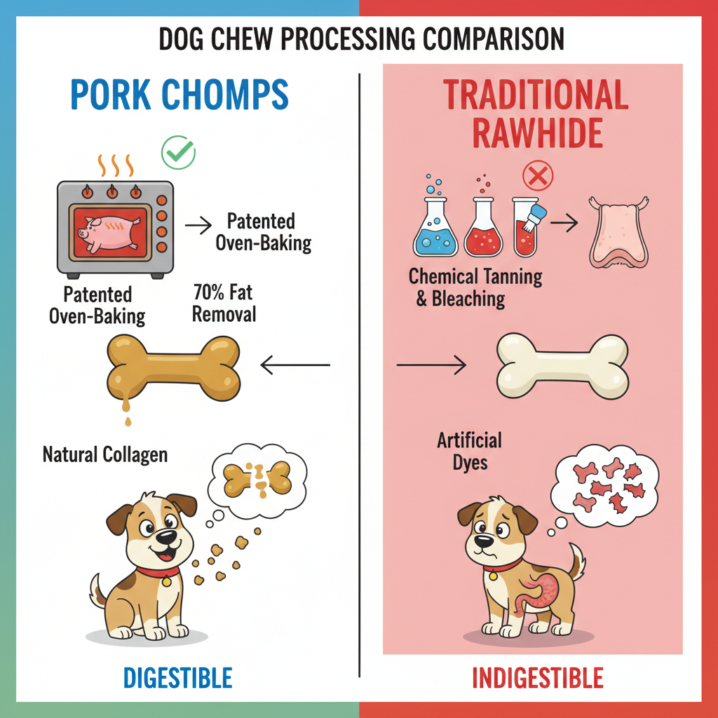 One of the biggest worries for pet parents is the "rawhide risk"—those nasty, undigested chunks that can sit in a dog's stomach for days. Pork Chomps Baked Pork Skin Dog Chews solve this by being 100% rawhide-free. Because they are baked rather than tanned with harsh chemicals, there’s no chemical bleaching or artificial dyes involved. Our team at Petscarelab confirms that these chews break down quickly in the digestive tract, significantly reducing the risk of sharp fragments or internal obstructions that often lead to emergency vet visits.