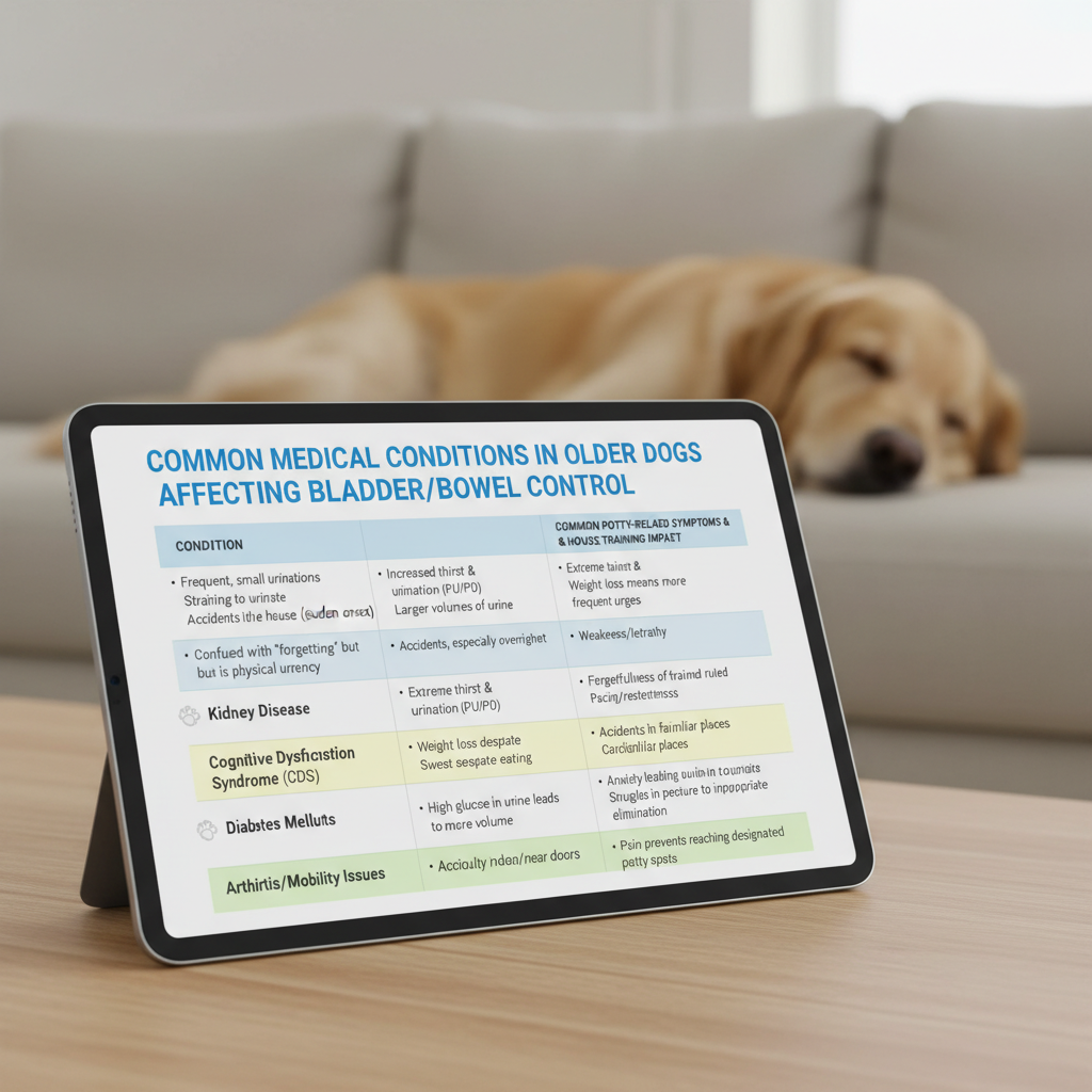 If your older dog suddenly starts having accidents, or if potty training feels like an uphill battle, it's really important to consult your veterinarian. Many medical conditions can interfere with a dog's bladder and bowel control, such as: