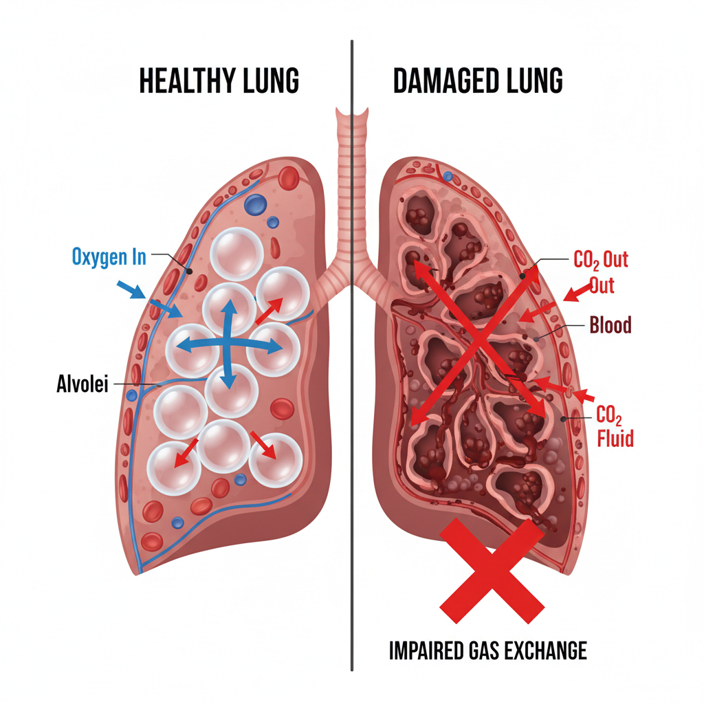 A pulmonary contusion happens when your dog's lung tissue gets bruised and damaged. When trauma hits, blood and fluid seep into the delicate air sacs (called alveoli) and the surrounding lung tissues. This leakage messes with the lung's crucial job of swapping oxygen for carbon dioxide, making it really tough for your dog to breathe.