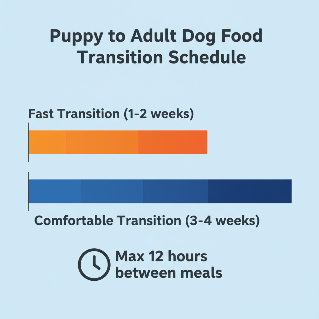 Your puppy should still be on a nutritious puppy-specific diet approved by the Association of American Feed Control Officials (AAFCO). As your puppy nears 10 to 12 months, start discussing with your veterinarian the transition to adult dog food. This dietary switch typically takes one to two weeks, but spreading it over three to four weeks can help your puppy adjust more comfortably.
