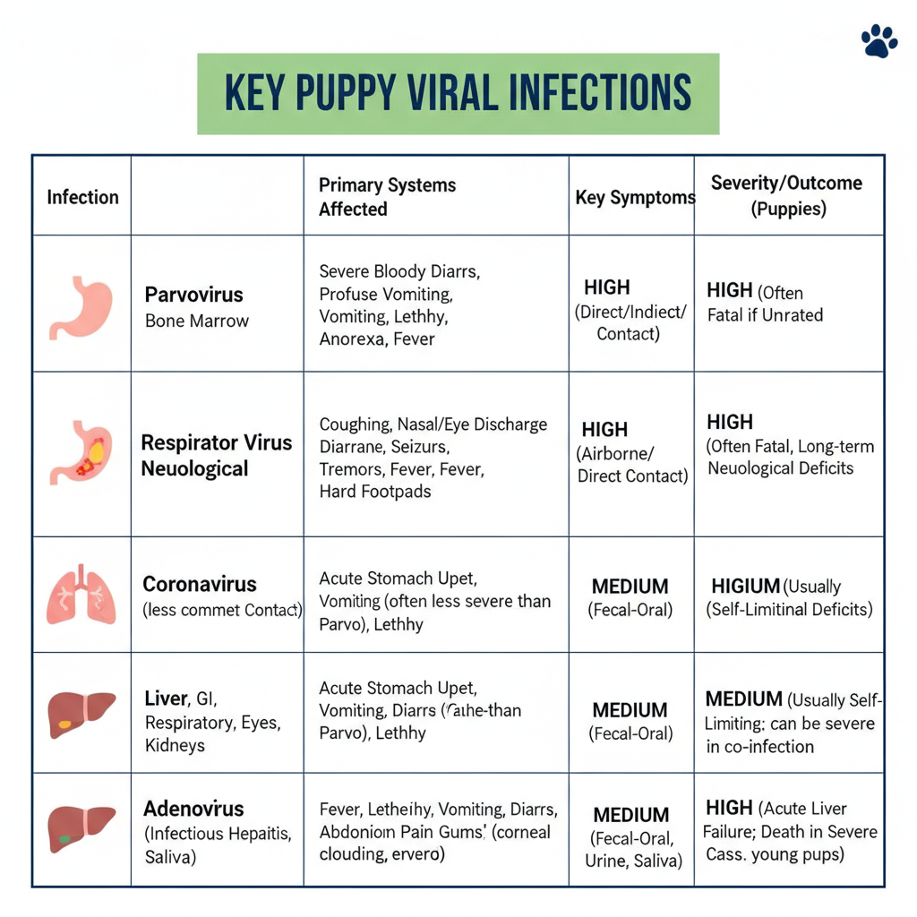 Puppies require multiple vaccinations to protect them from deadly viruses. The distemper vaccine guards against four dangerous infections: parvovirus, distemper virus, coronavirus, and adenovirus.