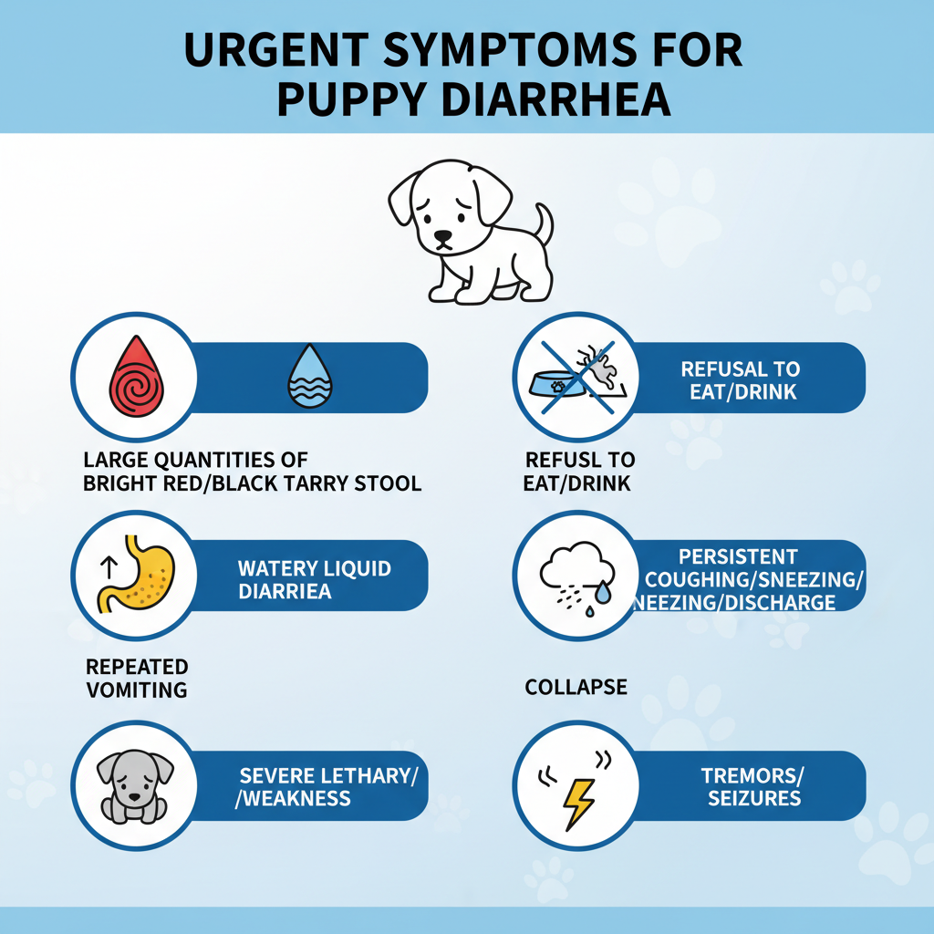 Determining whether your puppy’s diarrhea is an emergency can be challenging. If you observe any of the following urgent symptoms, seek veterinary care immediately: