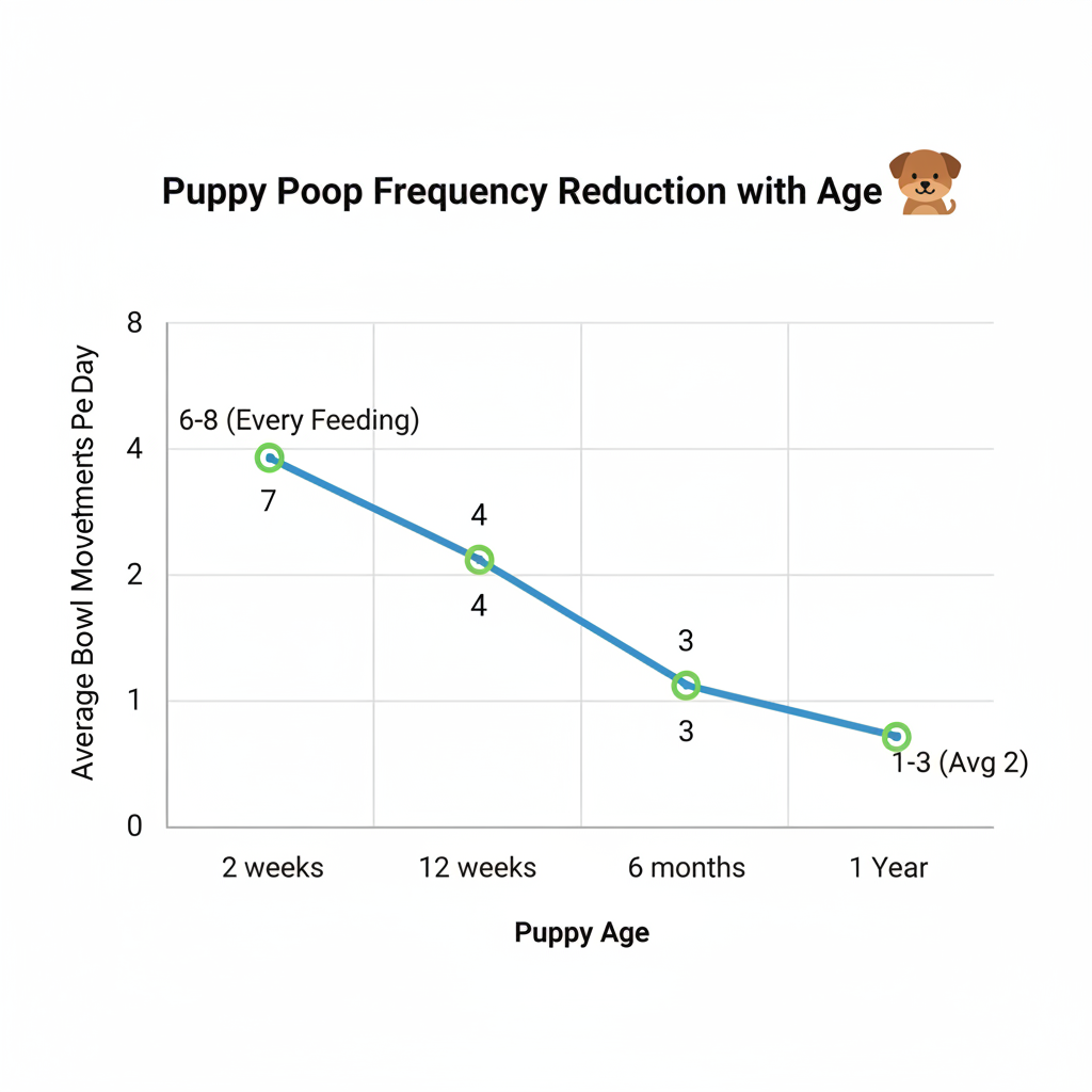 The encouraging part is that as your puppy grows, their bathroom schedule will gradually slow down. While a 2-week-old pup might poop every time they’re fed, by 12 weeks old they may reduce this to about 4 times daily. By 6 months, it typically drops to around 3 times a day. Most dogs settle into their adult routine by one year of age, commonly pooping once a day, though some may go up to three times daily.