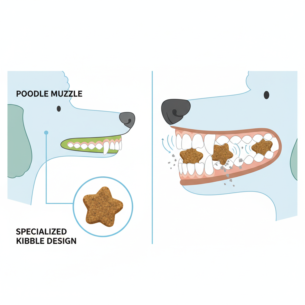 - Specialized Kibble: Poodles have a very specific "straight" muzzle shape. This kibble isn't just round; it's textured and shaped so they can actually grab it and crunch it properly, which helps scrub away plaque before it turns into a vet bill.