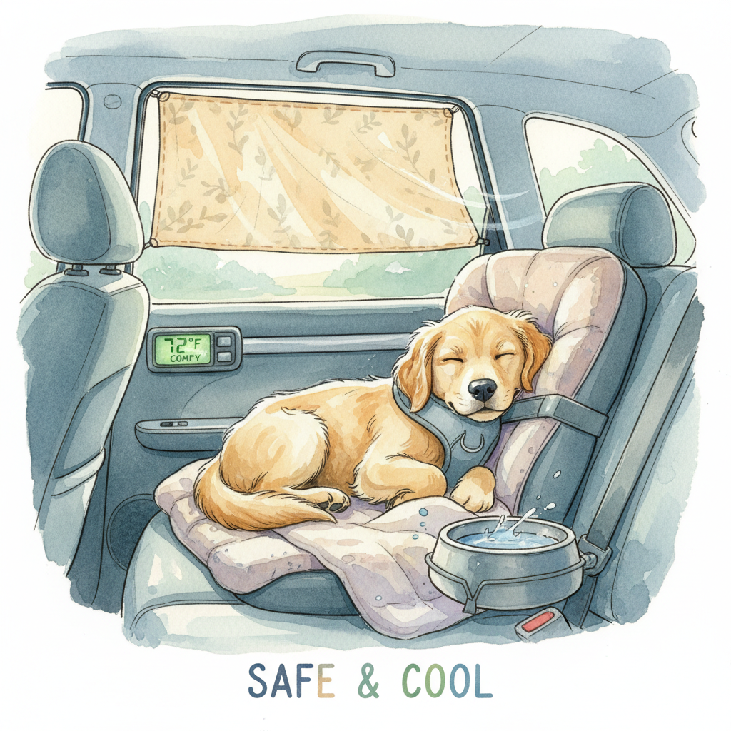 Puppies are far more sensitive to temperature changes in cars than humans. Extra care keeps them safe and cozy.