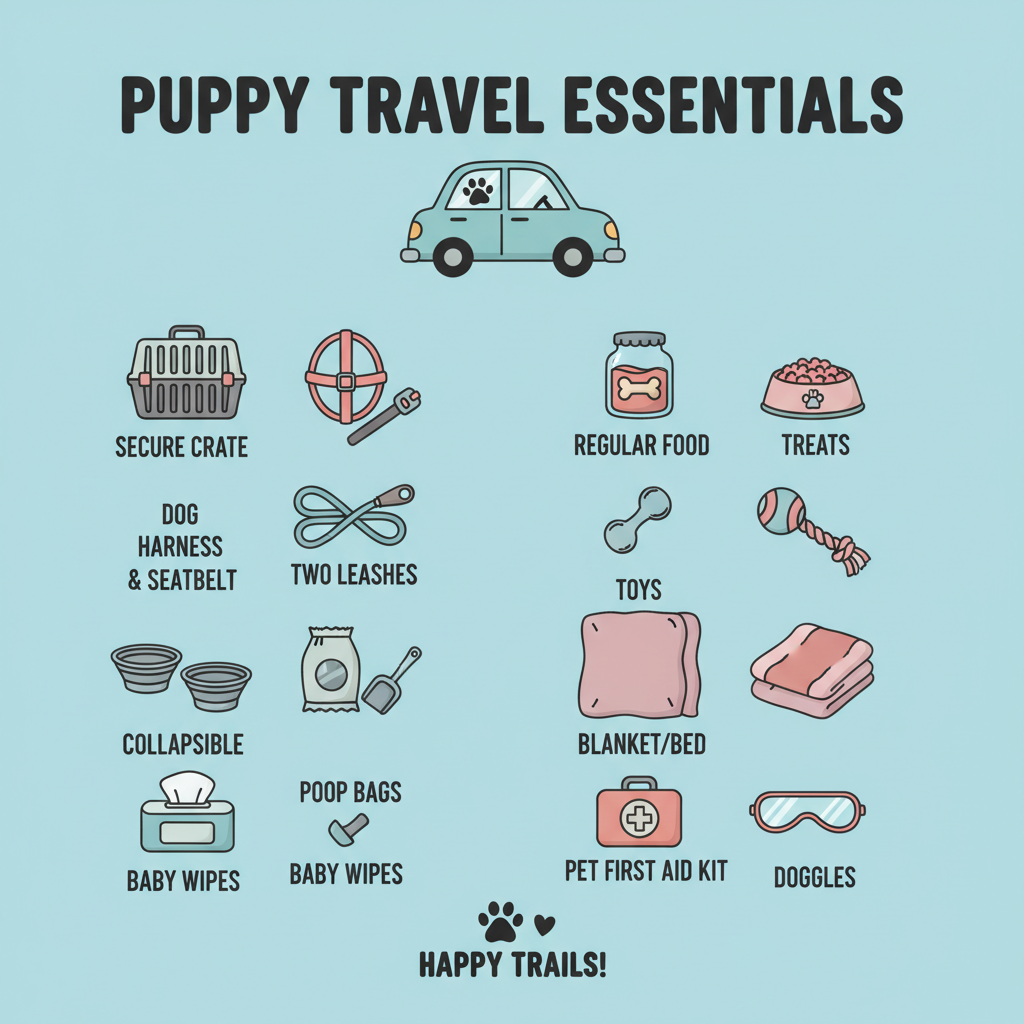 Before departing, puppy-proof your vehicle by removing or securing objects that could be hazardous if chewed or swallowed. Loose items can become dangerous projectiles in a moving car.
