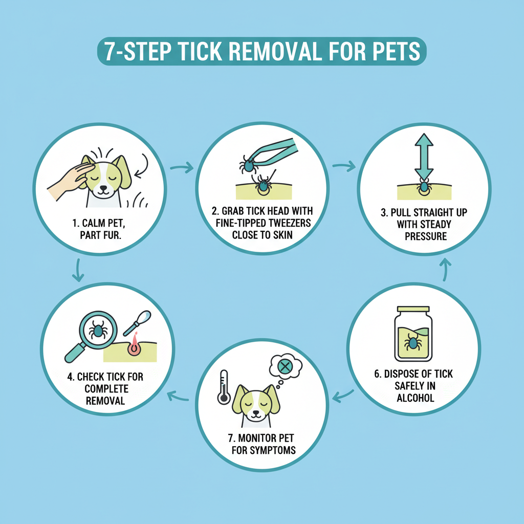 Learn how to safely remove a tick from your pet (dog or cat) with this step-by-step guide. Prevent disease and keep your furry friend healthy. Find out when to see a vet.
