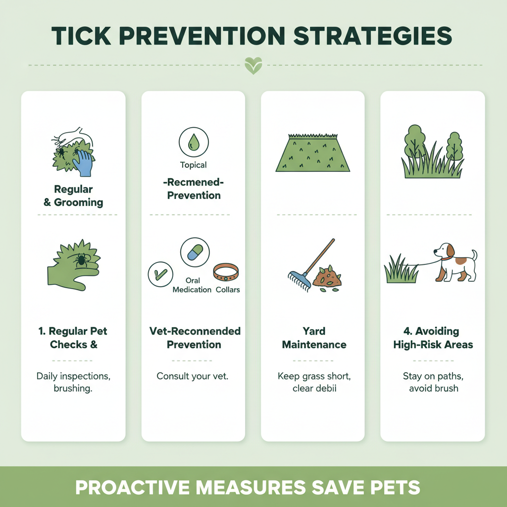 Make it a habit to regularly check your pet for ticks, especially after they've been romping around in wooded or grassy areas. Grooming your pet daily also helps you spot and flick off ticks before they have a chance to transmit diseases. And don't forget your yard! Keeping your lawn mowed and free of leaf litter makes it less appealing for ticks to set up shop.