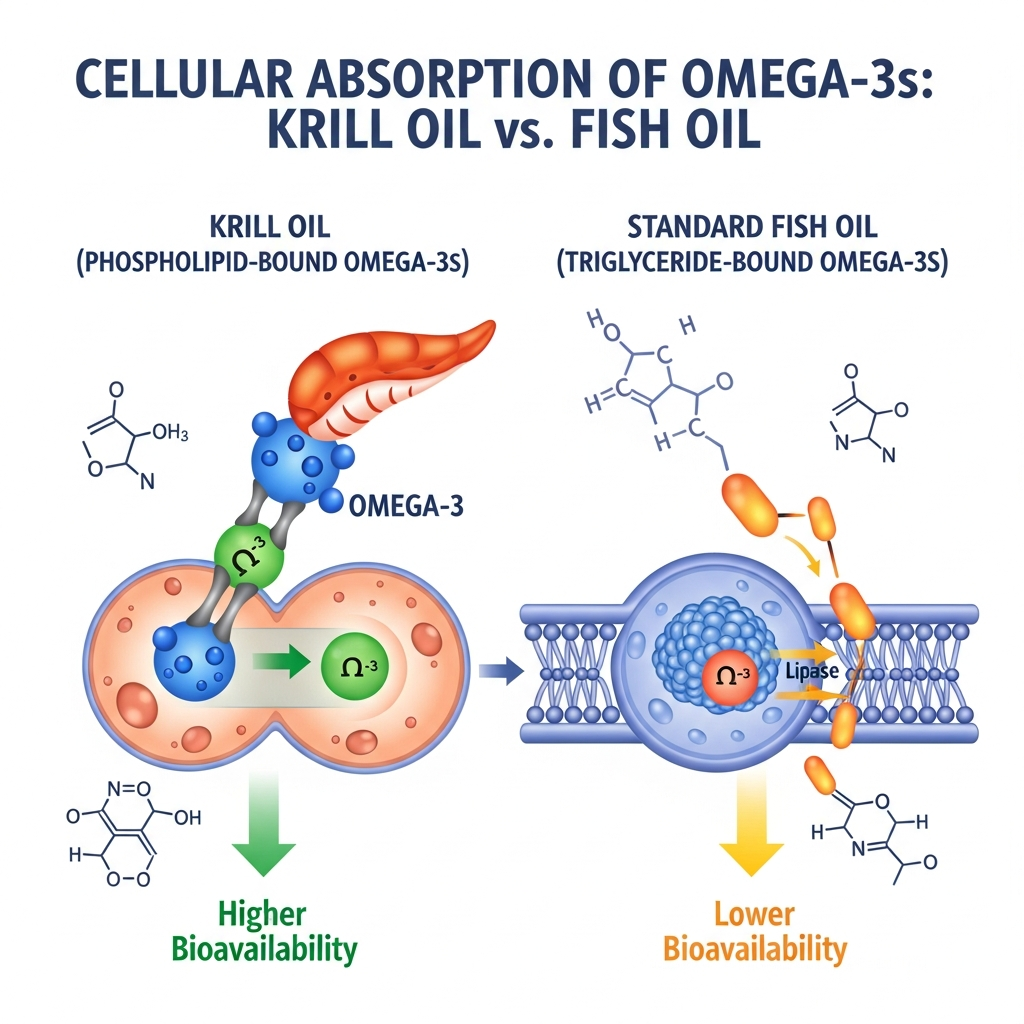High Bioavailability: Phospholipid-bound Omegas are absorbed better than fish oil. Mess Factor: Requires thawing and can be a bit smelly.