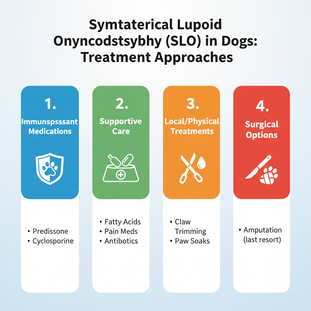 Lupoid onychodystrophy is a chronic condition that needs ongoing care. Treatment focuses on calming inflammation, easing pain, preventing infections, and encouraging new, healthy claw growth. Vets tailor treatment plans to each dog, considering the severity of their condition.