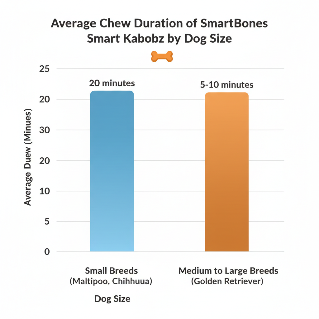 If you're looking for a chew that keeps a Golden Retriever busy for three hours, this isn't it. Our team observed that for medium to large breeds, a single kabob lasts about 5 to 10 minutes. For smaller breeds like Maltipoos or Chihuahuas, you might get a solid 20 minutes of quiet time. While they aren't "marathon" chews, the mechanical action of chewing through the vegetable starch and dried meat does help scrub away light plaque. It’s a great "after-dinner" snack to help keep teeth clean, but don't throw away your dog's toothbrush just yet.