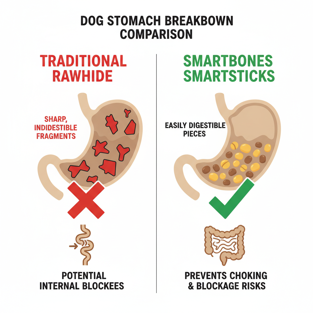 The biggest win for these sticks is what isn't in them. Traditional rawhide is often processed with harsh chemicals and can be a major choking or blockage risk. Our research shows that these sticks are designed to be highly digestible, breaking down much faster in your dog's stomach. We checked for sharp fragments during our testing; the sticks tend to soften as your dog chews rather than splintering into dangerous shards. However, always keep an eye on your pup while they're snacking. If they manage to break off a large chunk, it’s best to swap it for a fresh one to prevent any swallowing mishaps.
