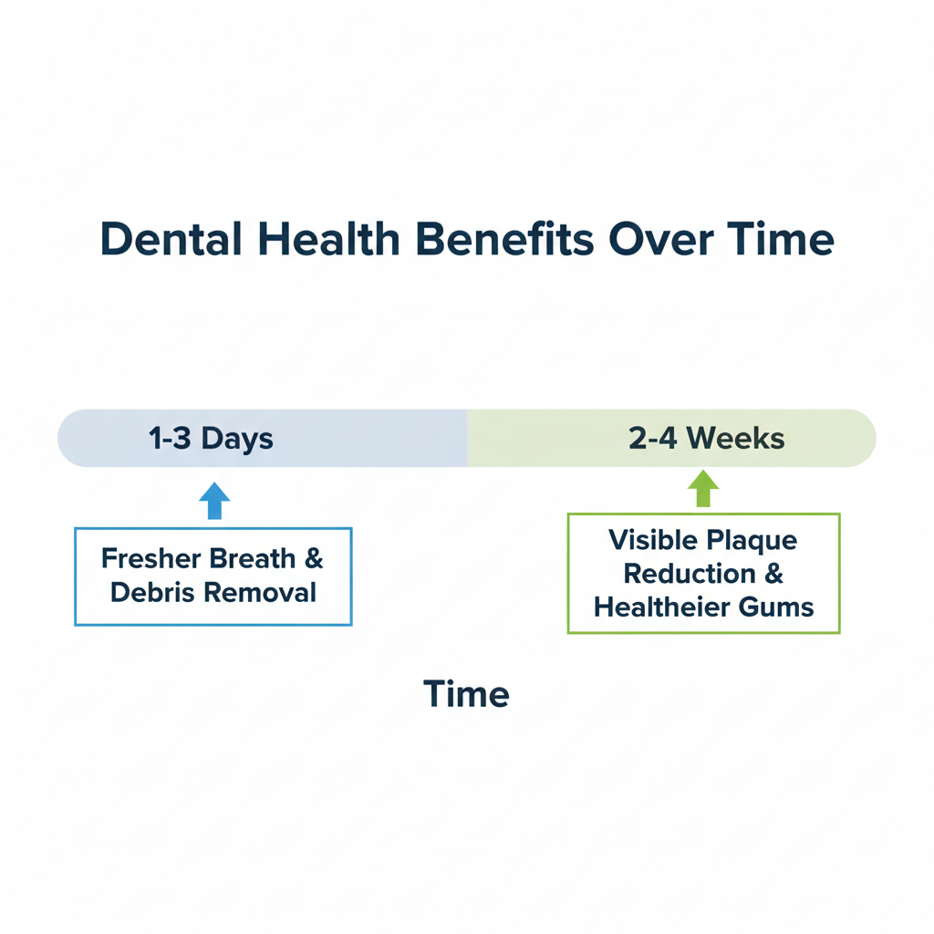 • Long-Term (2-4 Weeks): After a few weeks of daily chewing, we noticed a visible reduction in the light yellow film (plaque) near the back molars. While it won't replace a professional vet cleaning for a dog with heavy tartar, it’s a fantastic preventative tool.