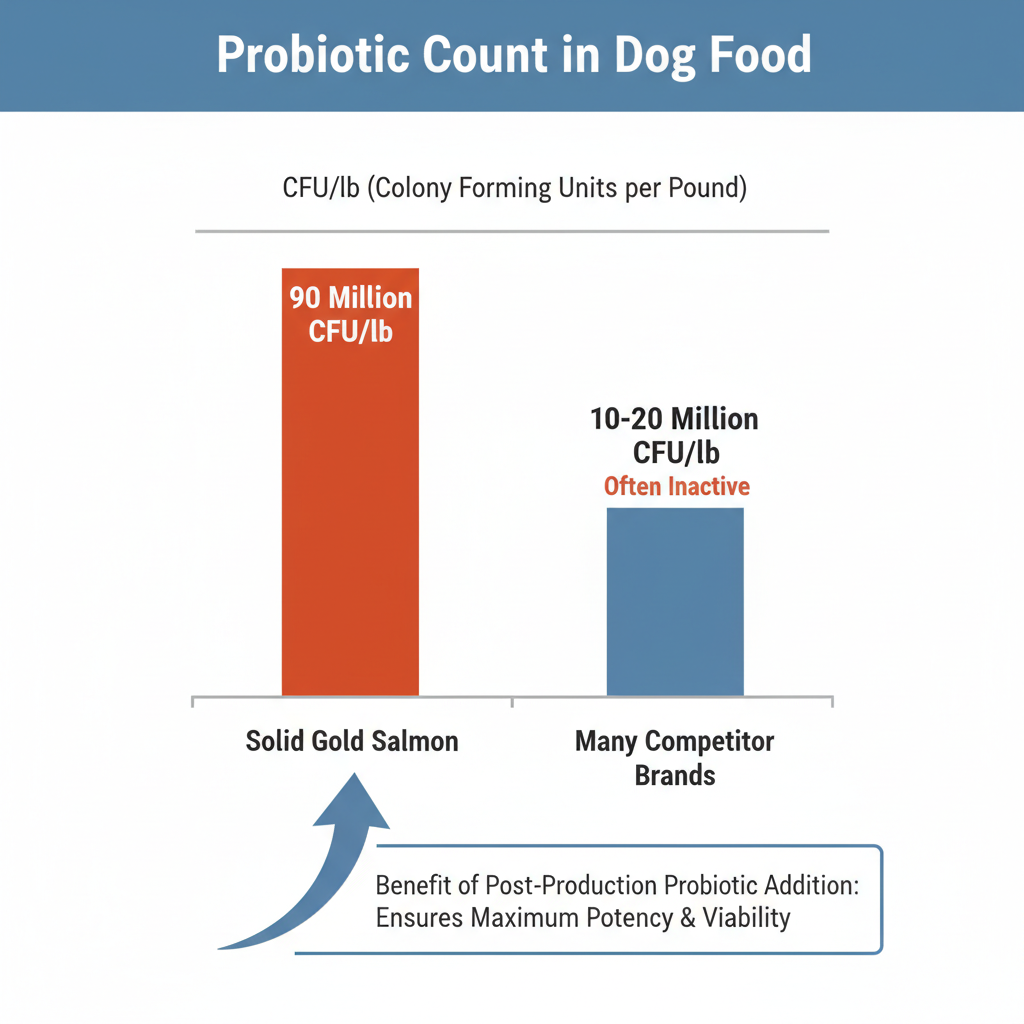The standout feature is the 90 million probiotics per pound. Many brands claim to have probiotics, but they often don't survive the high-heat manufacturing process. Solid Gold adds these after the kibble has cooled, ensuring the "good bugs" actually make it into your dog's belly alive.