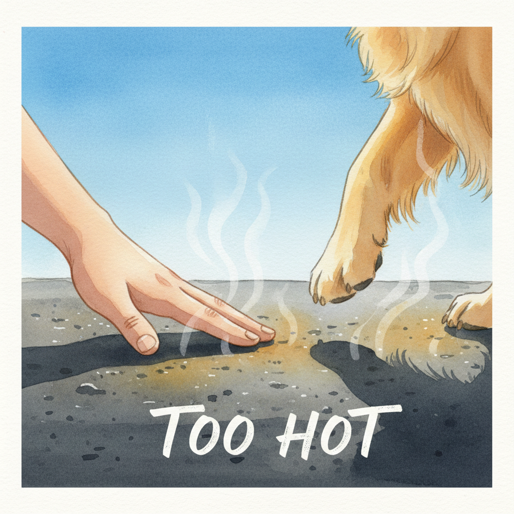 Imagine walking barefoot on hot asphalt—ouch! Concrete and pavement can get scorching hot under the summer sun, easily burning your dog's sensitive paw pads. Here's a quick test: press the back of your hand against the ground for seven seconds. If it's too hot for you to hold comfortably, it's definitely too hot for your dog's paws. Find some grass, dirt, or shaded paths instead.