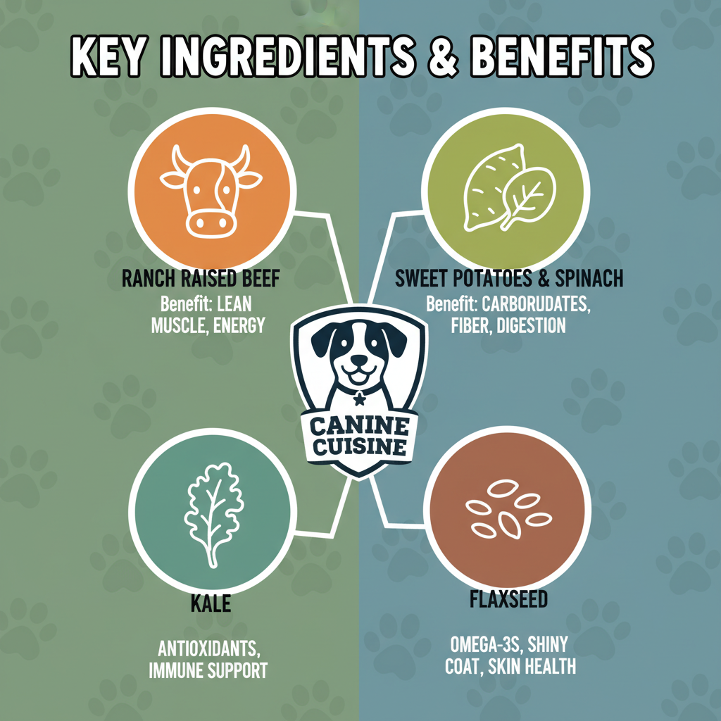 We took a close look at what’s actually inside the box, and the ingredient list is impressively short and recognizable. Ranch Raised Beef is the primary protein source. It’s lean, high-quality muscle meat that supports strong muscles and healthy energy levels. Sweet Potatoes & Spinach provide the necessary carbohydrates for energy and a fiber boost to keep digestion moving smoothly. Kale is a superfood inclusion that packs a punch of antioxidants to support your dog’s immune system. Flaxseed is rich in Omega-3 fatty acids, which helps your dog’s coat stay shiny and can reduce skin inflammation.