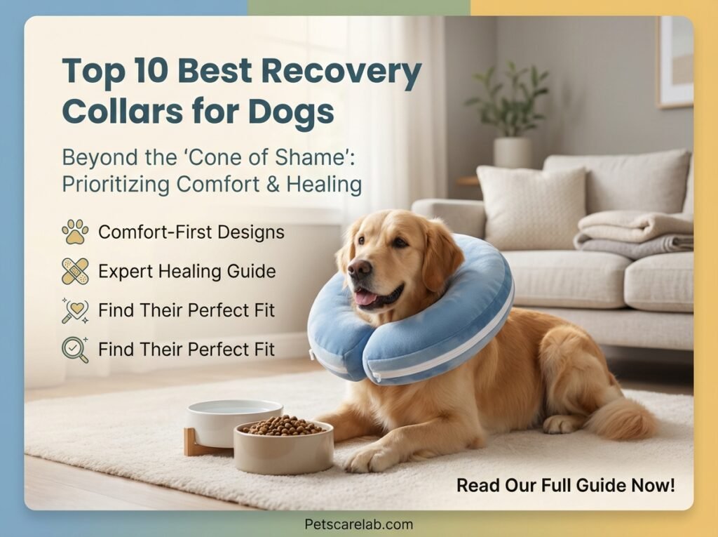 Dealing with a dog recovering from surgery, a pesky wound, or an irritating hot spot is tough for any pet parent. That's why having the right recovery collar (sometimes called an E-collar or "cone of shame") is so important. These collars stop your dog from licking, chewing, or scratching, letting those sensitive areas heal. But with endless options out there – from classic plastic cones to soft fabric designs and comfy inflatables – finding the best recovery collars for dogs can feel like a huge task. Don't worry, our team at Petscarelab has done the digging for you, evaluating comfort, how well they work, durability, and how easy they are to use.