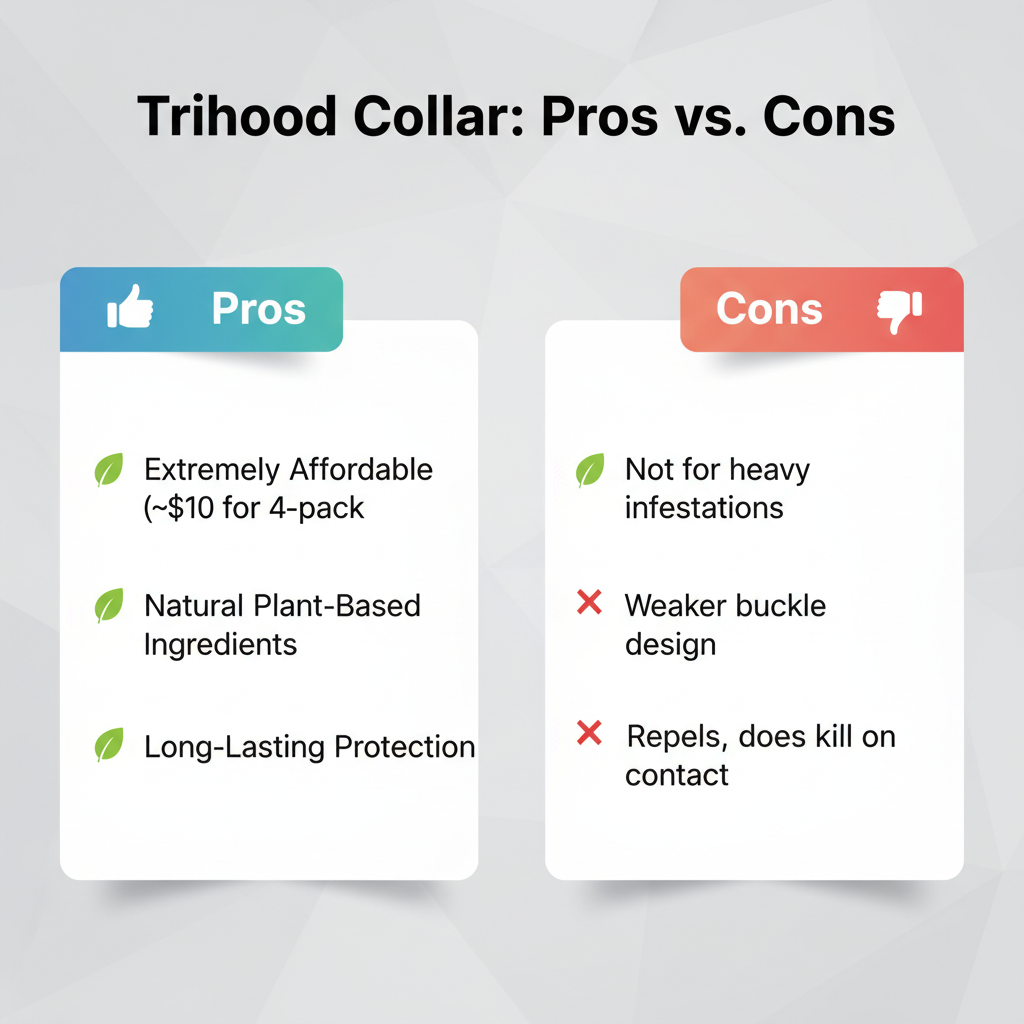 Petscarelab’s Verdict: The Trihood Flea & Tick Collar provides a remarkably affordable, plant-based 4-pack that offers a gentle, scent-driven repellent for dogs of all sizes, though it lacks the "knock-down" power of heavy chemical alternatives.